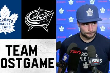 L’entraîneur-chef et les joueurs parlent avec les médias après la défaite 3-2 en prolongation des Leafs contre les Blue Jackets…