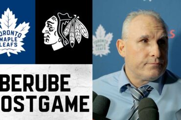 L’entraîneur-chef Craig Berube s’entretient avec les médias à la suite de la défaite 3-2 des Leafs face aux Blackhawks de…