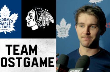 L’entraîneur-chef et les joueurs parlent avec les médias après la défaite 3-2 des Leafs contre les Blackhawks de Chicago, samedi.…