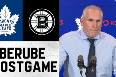 L’entraîneur-chef Craig Berube s’entretient avec les médias à la suite de la défaite de 5-3 des Leafs face aux Bruins…