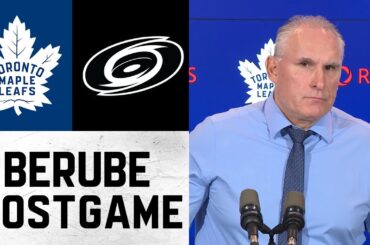 L’entraîneur-chef Craig Berube s’entretient avec les médias à la suite de la défaite 5-4 des Leafs contre les Hurricanes de…