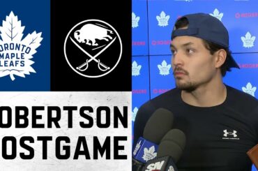 Nick Robertson s’entretient avec les médias après la victoire 4-3 des Leafs en prolongation contre les Sabres de Buffalo. ABONNEZ-VOUS…