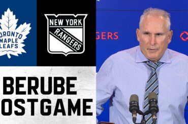 L’entraîneur-chef Craig Berube s’entretient avec les médias après la victoire 2-1 en prolongation des Leafs contre les Rangers de New…