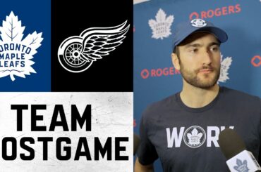 Les joueurs et l’entraîneur parlent avec les médias après la défaite 6-3 des Leafs contre les Red Wings de Détroit…