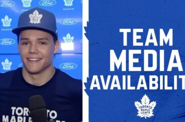 Les joueurs et l’entraîneur s’adressent aux médias après l’entraînement de dimanche. 0:00 – Matthew Knies 2:47 – Easton Cowan 6:00…