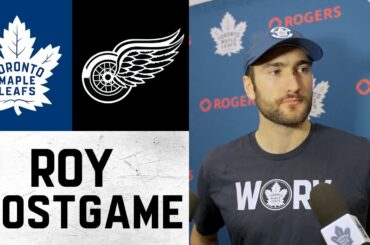 Nicolas Roy s’entretient avec les médias suite à la défaite de 6-3 des Leafs face aux Red Wings de Détroit,…