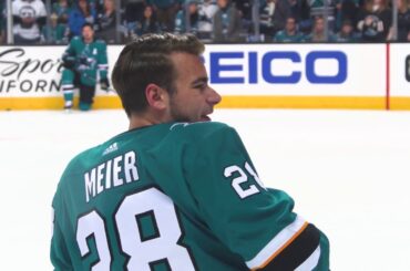 L’attaquant des Sharks Timo Meier porte un micro lors de la ronde 1, troisième match des éliminatoires de la Coupe…
