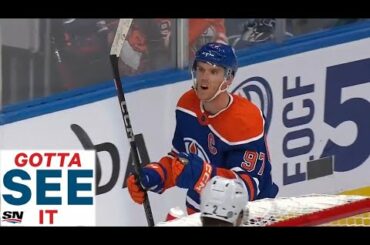 Regardez Connor McDavid réussir le premier tour du chapeau de la saison de la LNH lors du premier match à…