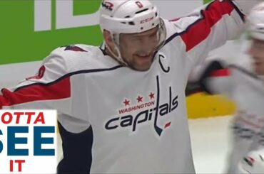 Regardez l’attaquant des Capitals de Washington Alexander Ovechkin battre le gardien des Canucks de Vancouver Spencer Martin pour marquer le…