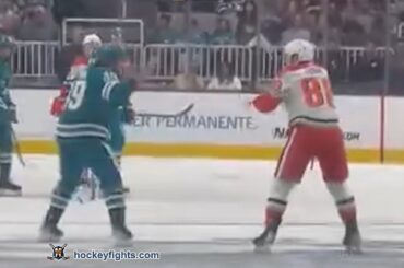 In @Sharks de San José Combat de hockey AHL ! 🦆vs🦈 janvier 23, 2023 Travis Howe démolit Montana Onyebuchi lors d’un combat de hockey lors du San Diego Gulls vs San Jose Barracuda (AHL…