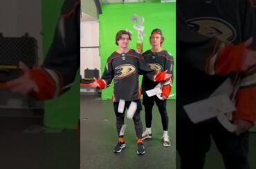 Regardez Trevor Zegras et Jamie Drysdale montrer leur bromance lors de la journée des médias des Ducks d’Anaheim. #shorts #trevorzegras…