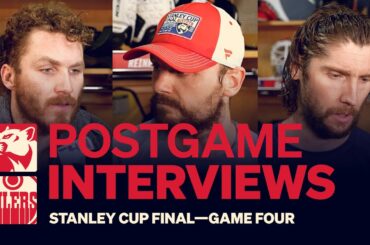 Le lauréat du prix Conn Smythe, Sam Bennett, parle avec les médias après la deuxième Coupe Stanley consécutive de l’équipe.…