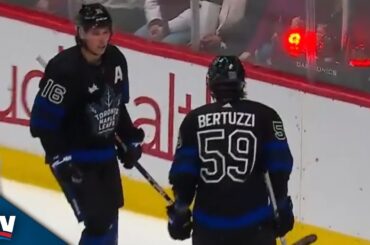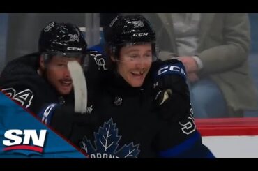 Regardez Tyler Bertuzzi des Maple Leafs de Toronto inscrire son équipe sur le tableau contre l’Avalanche du Colorado envoyant un…