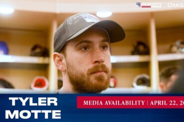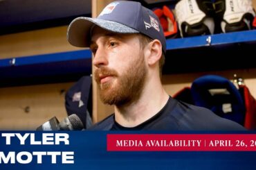 L’attaquant des Rangers de New York Tyler Motte répond aux questions des médias après l’entraînement du 26 avril. » Abonnez-vous…