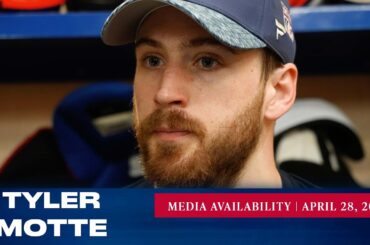 L’attaquant des Rangers de New York Tyler Motte répond aux questions des médias après l’entraînement du 28 avril. » Abonnez-vous…