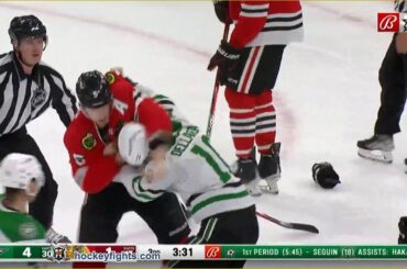 Ty Dellandrea contre Connor Murphy des Stars de Dallas au match des Blackhawks de Chicago le 28 mars 2023.