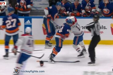 Brendan Gallagher contre Jean-Gabriel Pageau des Canadiens de Montréal lors du match des Islanders de New York le 11 avril…