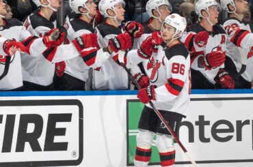 Jack Hughes enterre la rondelle pour le premier but de Hughes de la soirée alors que Jack et son frère…