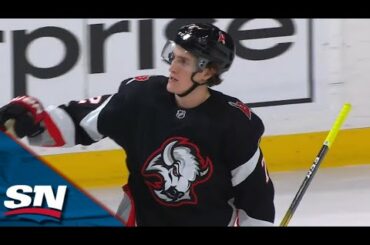 Regardez l’attaquant des Sabres de Buffalo, Tage Thompson, récupérer toute la rondelle sur un tir ponctuel en avantage numérique, pour…