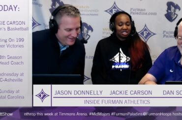Le directeur sportif de Furman Jason Donnelly et l’entraîneur de basketball féminin Jackie Carson rejoignent la voix des paladins Dan…
