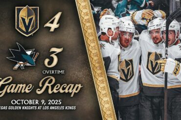 Les Golden Knights de Vegas ont battu les Sharks de San Jose, 4-3, en prolongation le 9 octobre 2025 au…