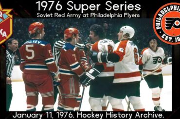 In @Flyers de Philadelphie 1976 Super Series: Soviétique Red Army vs Philadelphia Flyers. 11 janvier 1976. janvier 20, 2024 Bataille internationale classique entre les « Broad Street Bullies », notoires pour avoir battu et intimidé leur chemin vers les championnats de…