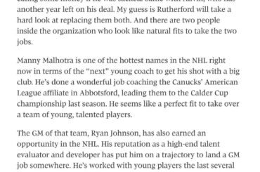 Il semble que la direction des Canucks envisage sérieusement RJ pour GM. Une chose que quelqu’un a mentionnée dans un…
