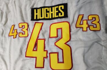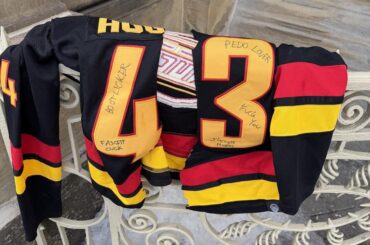 Quelqu’un a laissé ce maillot de Quinn Hughes à l’extérieur du Temple de la renommée du hockey à Toronto aujourd’hui…