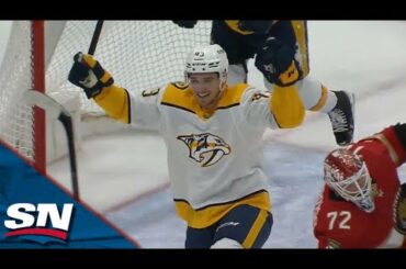 Regardez John Leonard, des Predators de Nashville, battre le gardien de but des Panthers de la Floride, Sergei Bobrovsky, après…