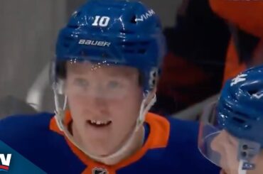 Regardez l’attaquant des Islanders de New York, Simon Holmstrom, placer la passe de Jean-Gabriel Pageau au fond des filets pour…