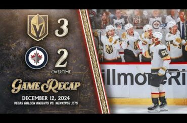 Les Golden Knights de Vegas ont gagné contre les Jets de Winnipeg, 3-2, en prolongation, le 12 décembre au Centre…