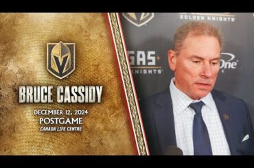 L’entraîneur-chef Bruce Cassidy s’adresse aux médias à la suite d’une victoire de 3-2 en prolongation contre les Jets de Winnipeg…