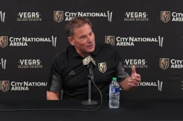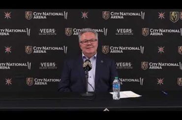 Le directeur général des Golden Knights, Kelly McCrimmon, s’entretient avec les médias après la saison 2023-24. N’oubliez pas de vous…