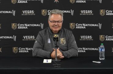 Le directeur général des Golden Knights, Kelly McCrimmon, s’adresse aux médias alors que le camp d’entraînement s’ouvre pour la saison…