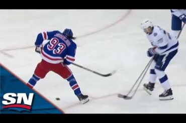 Regardez l’attaquant des Rangers de New York Mika Zibanejad exécuter un doux mouvement entre les jambes autour de Victor Hedman…