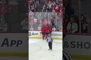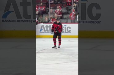 La star des Devils du New Jersey, Jesper Bratt, fait quelques tours de rondelle pendant les échauffements avant le match…