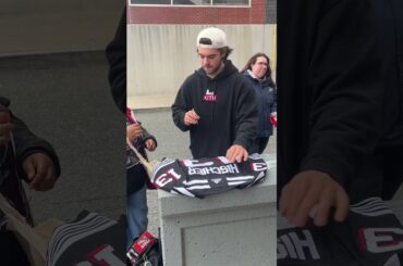 Le capitaine des Devils du New Jersey, Nico Hischier, signe des autographes et prend des photos avec les fans après…