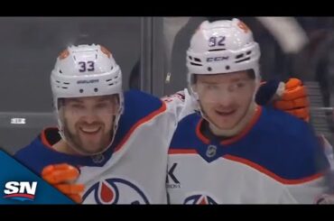 Regardez Leon Draisaitl des Oilers d’Edmonton faire pression sur la rondelle, forçant un revirement qui mène à un tir sur…