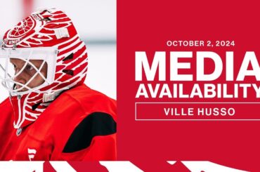 Ville HUsso prend la parole après l’entraînement des Red Wings de Détroit le mercredi 2 octobre 2024 au centre d’entraînement…