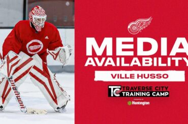 Le gardien de but des Red Wings Ville Husso s’entretient avec les médias après le troisième jour du camp d’entraînement…