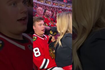 Lors d’un match des Blackhawks de Chicago au United Center, un superbe journaliste au bord de la patinoire trébuche au…