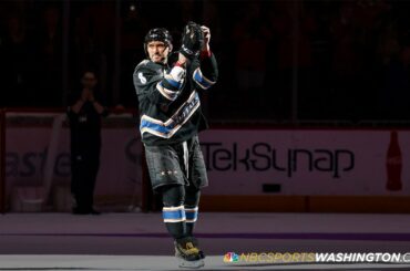 Regardez Alex Ovechkin recevoir une ovation debout des partisans du Capital One Arena après avoir marqué le 802e but en…