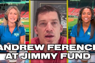 L’ancien joueur des Bruins Andrew Ference discute avec Sophia Jurksztowicz et Kasey Hudson pour le radio-téthon annuel du Jimmy Fund…