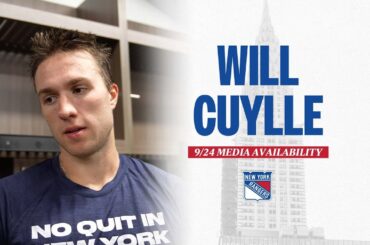 Le défenseur des Rangers de New York, Will Cuylle, répond aux questions des médias après le match du 24 septembre…