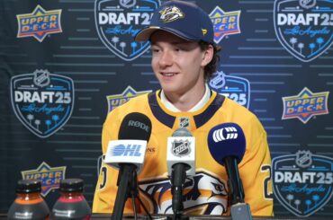 Le défenseur importé des Knights de London et espoir de l’Avalanche du Colorado, Linus Funck, marque son premier but dans…