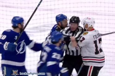 Nick Foligno vs Zemgus Girgensons des Blackhawks de Chicago à Tampa Bay Lightning Game le 28 janvier 2025. Via https://www.hockeyfights.com
