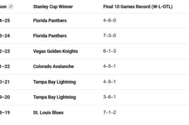 7 derniers matchs des vainqueurs de la Coupe Stanley 10 derniers matchs de la saison régulière — _CakeFartz_