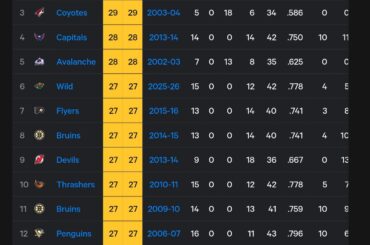 Les Wild en sont à 27 matchs joués cette année après le match d’aujourd’hui contre Dallas. le record de 30…