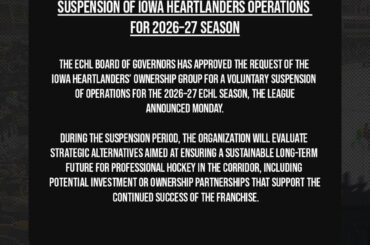[Iowa Heartlanders] suspendent volontairement leurs opérations pour la saison ECHL 2026-27 — DecentLurker96