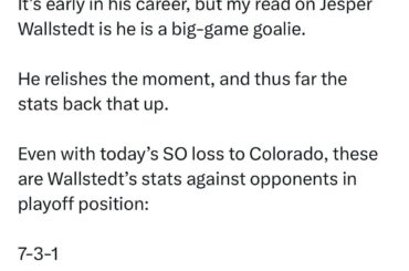 Il poursuit également en disant que contre des adversaires non éliminatoires, il a une fiche de 7-3-3 avec un sv%…